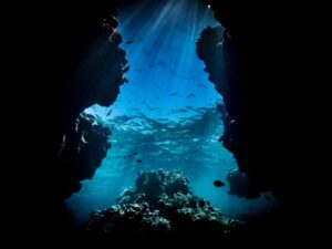 青の洞窟は初心者や体験ダイビングでも有名なポイントです。青の洞窟は出入り口が青く輝いています、透明度が良い水・水深・白い水底この3つが揃ってないと青の洞窟はできません。